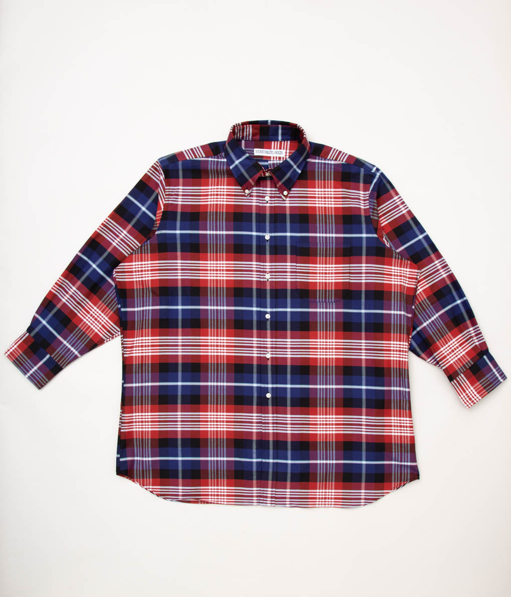 今回はいままでとはガラリと変わり、大柄のタータンチェック。これぞチェックとも言えるレッドとネイビー,ホワイトの配色です。ブルー系や無地が多かっただけに、目を惹く柄でどんな風に着ようかとわくわくしますね。