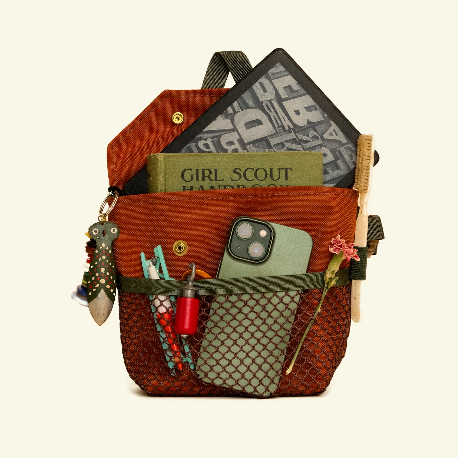 まず、オフィシャルの商品写真がかわいいです。バッグには釣り具や図鑑、お花やロープなどのアウトドアグッズが入り、付属のカラビナやフックには鋏やペン、懐中電灯がささってたりぶらさがっていたり…。普段持ち歩かないようなものなのに、あこんな風に使うの良いなと考えちゃいます。