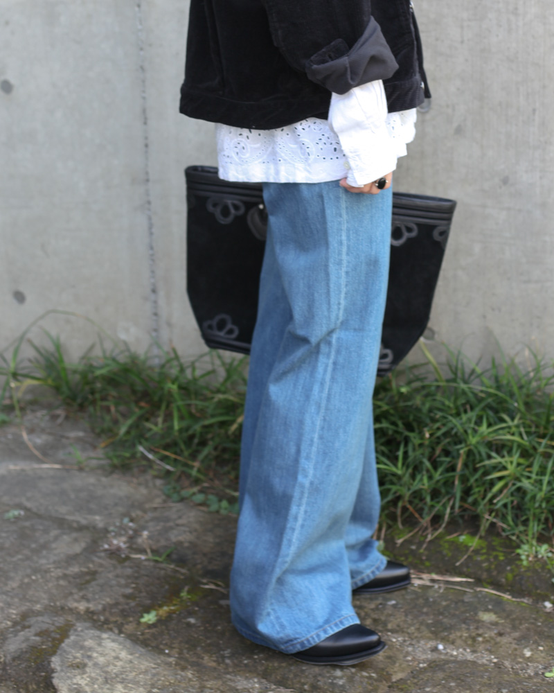 デニムパンツは今回初めてお取り扱いの『THE OPAL JEAN』。ウエストのドローストリングが特徴的。太すぎず、細すぎないストレートシルエットでリラックス感はありながら脚を長く綺麗に見せてくれます。